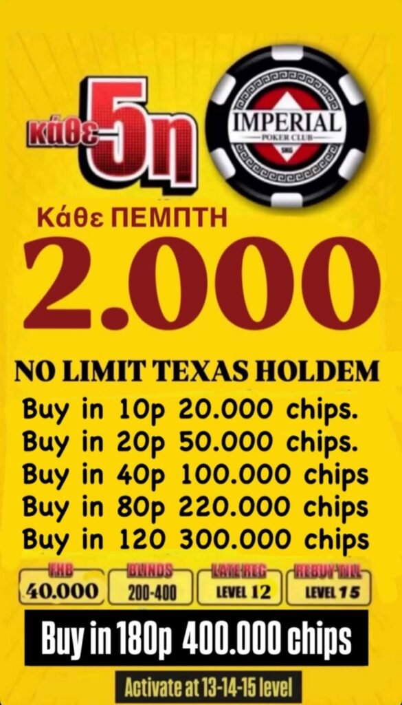 Η Πέμπτη στο Imperial δεν χάνεται – Έξι επιλογές buy-ins, 2000p GTD!!!