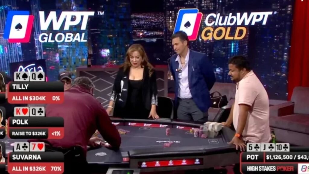 Σε ένα από τα πιο θεαματικά hands της σεζόν στο High Stakes Poker, οι Doug Polk, Jennifer Tilly και Santosh Suvarna κοντραρίστηκαν σε pot ύψους $1,126,500, που έτρεξε τέσσερις φορές.